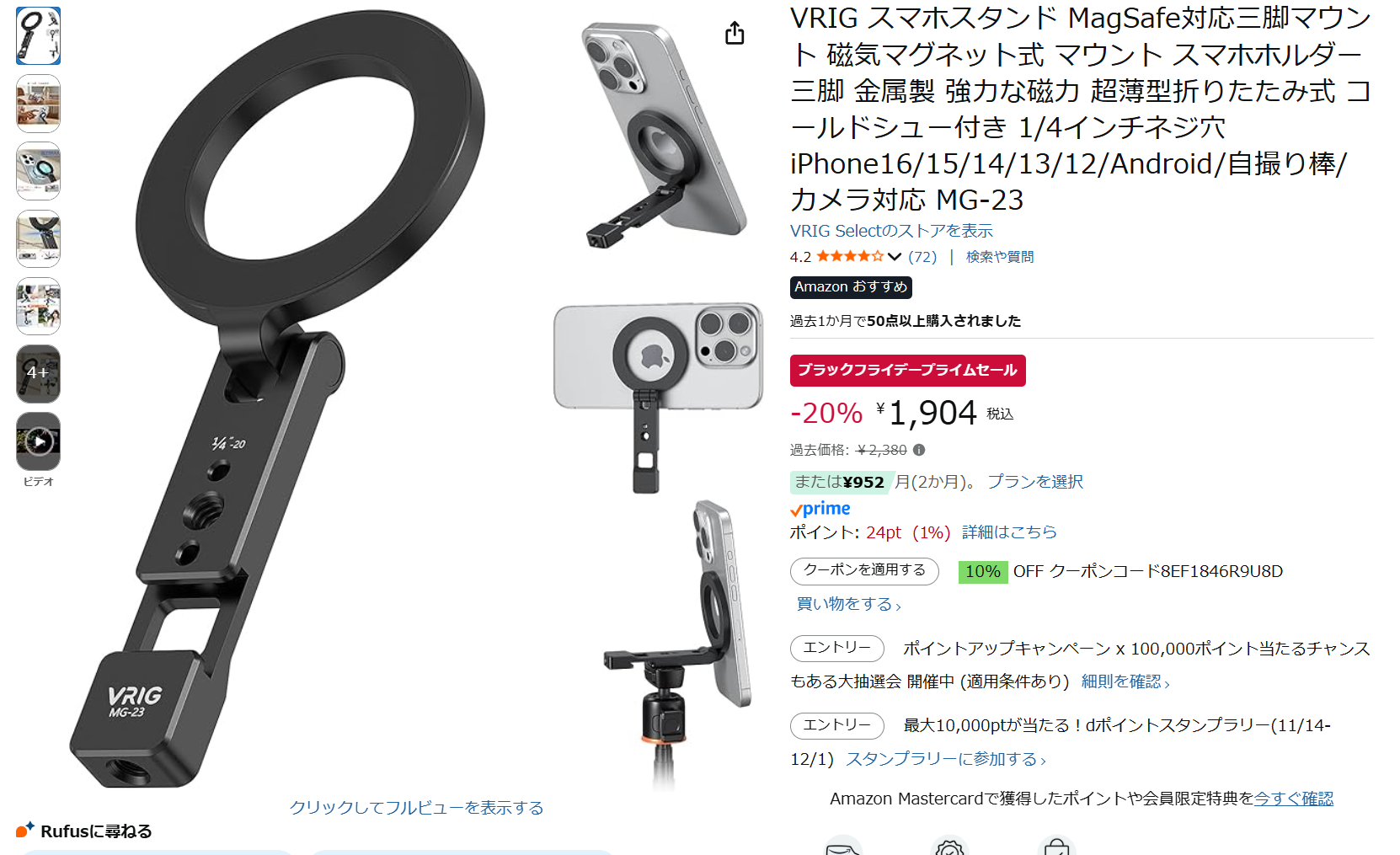 スマホ用の三脚マウントはいろいろあるけど、今回はMagSafeで着脱できるこれにしました